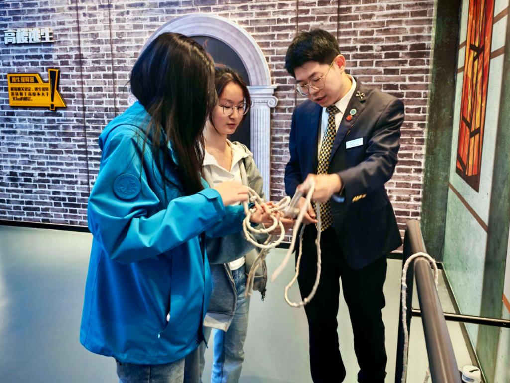 西安邮电大学长期与陕西省人防办深度校地合作,在全省率先搭建人防本科课程体系,编写《人民防空》教材并纳入必修学分,联合打造人防文创与吉祥物 “秦小盾”,以年轻化方式开展国防科普,,省内高校人防宣教工作成效突出。此次主题团日活动也是推动国家安全教育走进青年的生动实践。全体成员还参与了沉浸式互动体验,学习识别防空警报、参与人防知识抢答、练习逃生绳结打法、观看3D防空防灾演练,在实景实操中提升应急避险能力。