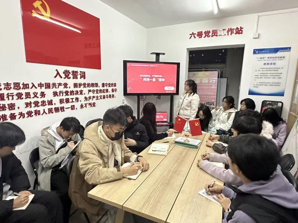 为深入推进“一站式”学生社区建设,赓续红色基因,2026年3月22日,六号党员工作站在长智公寓六号楼135组织开展“赓续精神血脉,凝聚奋进力量”系列学习活动第四期。本次学习由宣传部刘依菲同学担任主讲,以“惊天动地伟业,不朽精神丰碑”为主题,带领全体同学深入探寻这一伟大精神的深厚底蕴与时代意义。